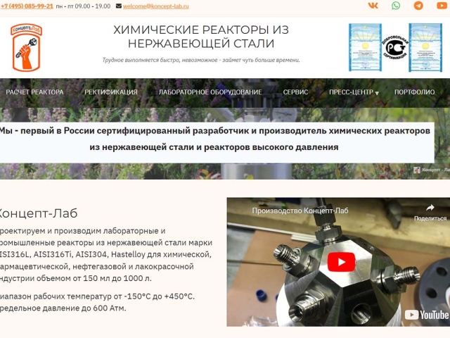 Молодая компания «Концепт-Лаб» проектирует и производит химические реакторы из нержавеющей стали для химической, фармацевтической, нефтегазовой и лакокрасочной индустрии объемом от 150 мл до 1000 л. https://koncept-lab.ru/