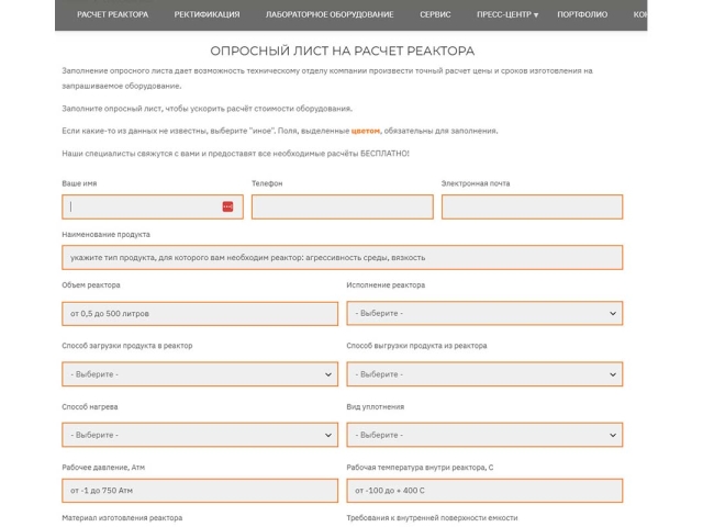 Так как все реакторное оборудование проектируется индивидуально под задачу убрали цены и сделали опросный лист. Опросник упростил первичные контакты, в опроснике уже теплый клиент более детально обозначал свою задачу и с таким клиентом было сразу предметное общение.