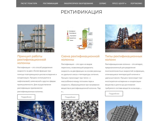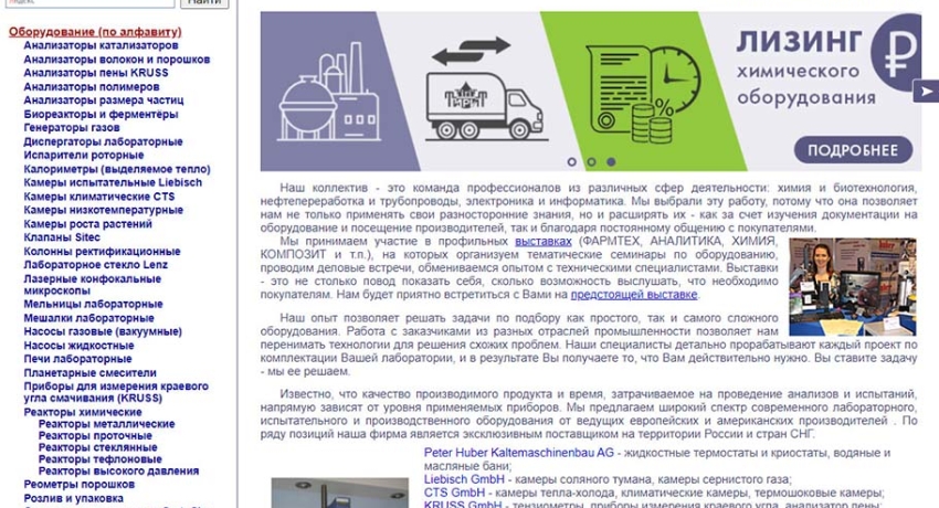 В процессе погружения в тематику выявили еще и другие направления и совместно с заказчиком оформили их как отдельные продукты: лабораторное оборудование и ректификация. В раздел СЕРВИС дополнили лизинг и госзакупки. Это позволило расширить бизнес-предложение без каких либо затрат - все в производственных возможностях компании.