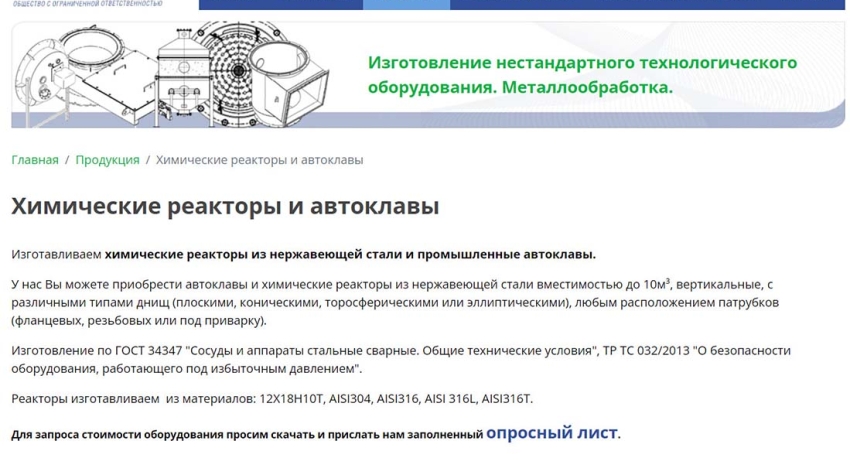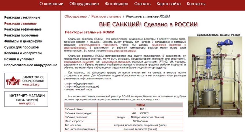 А вот у сайтов поставщиков реакторного оборудования из за рубежа уже другой, более привлекательный. Вот только импорт таких реакторов резко упал и эти сайты как и их компании - не конкуренты.