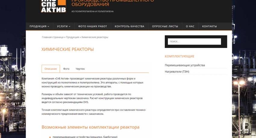 Так как продажа химических реакторов не происходит через добавление в корзину в один клик, мы за основу для сайта взяли готовое решение на Drupal. Функционал сопоставим с 1С-Битрикс только за CMS платить не нужно.