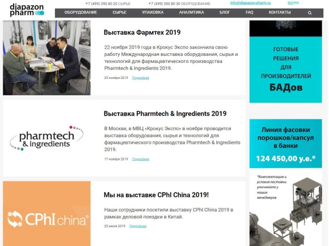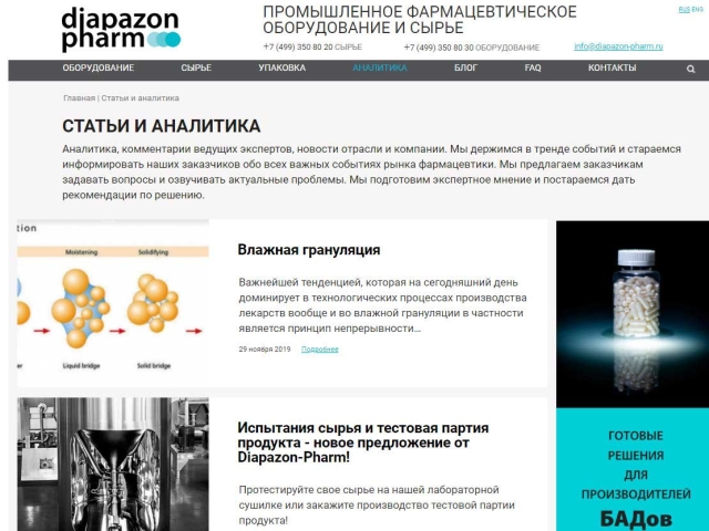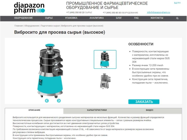 Задача: сделать корпоративный сайт для компании-поставщика фармацевтического оборудования и сырья.