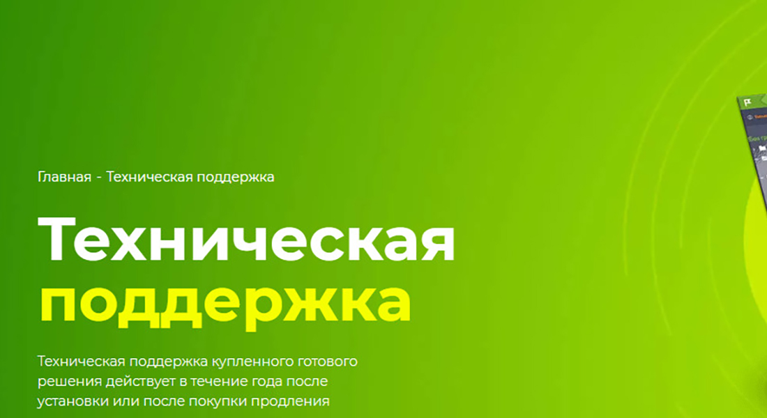 Техническая поддержка купленного готового решения действует в течение года после установки или после покупки продления: