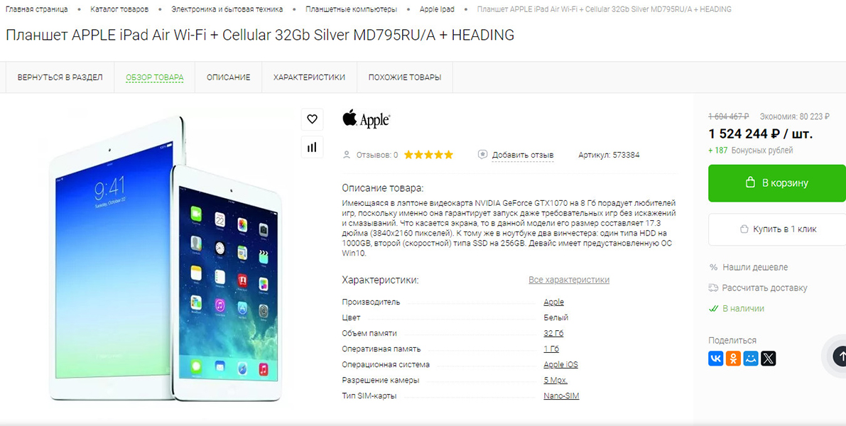 - быстрые покупки в 1 клик.