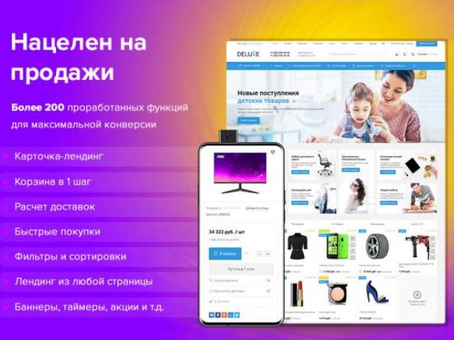 Эти особенности делают DELUXE привлекательным решением для предпринимателей, стремящихся быстро запустить эффективный интернет-магазин с минимальными вложениями.