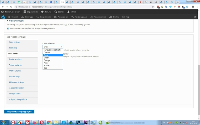 Базово предустановлено 8 цветовых тем - эти темы самостоятельно меняются в панели администратора.