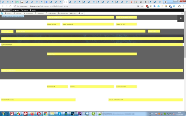 20+ регионов для размещения контентных блоков.